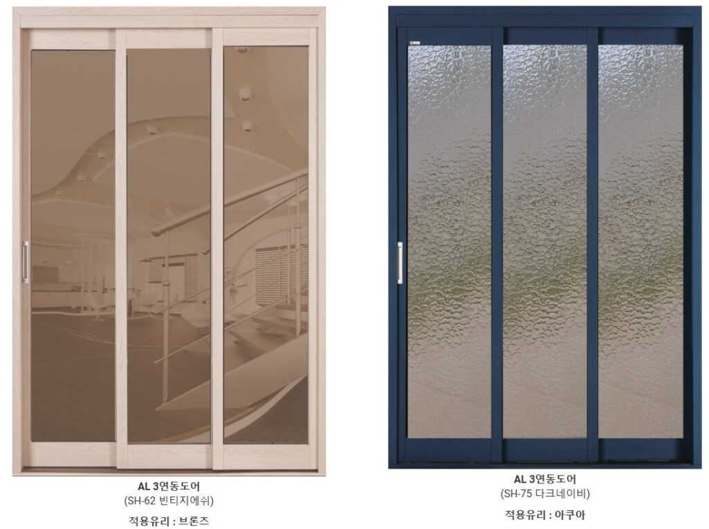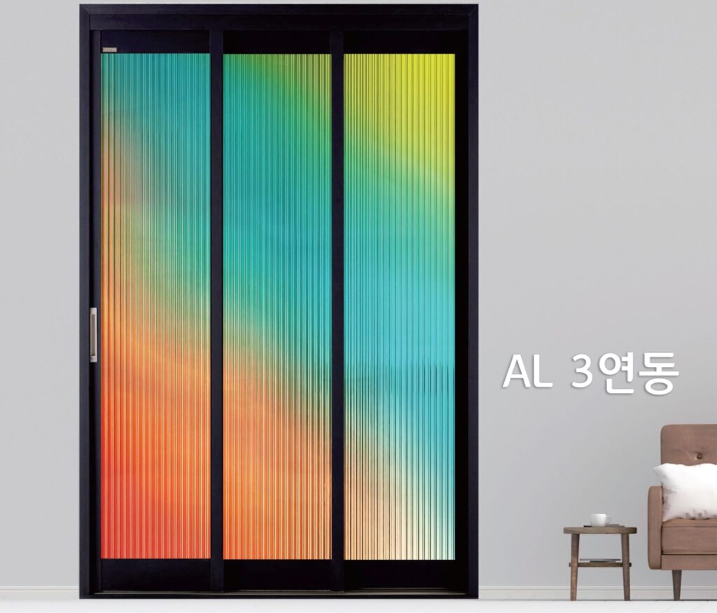 현대홈테크는 항상 고객의 만족을 위하여 노력합니다 3연동 도어 다양한 컬러로 연출이 가능한 랩핑형 슬림연동 - 50mm 슬림바를 사용하여 심플함과 안정감을 모두 살려낸 가장 기본에 충실한 연동도어 제품 입니다. - 필름을 랩핑하여 색을 입히기 때문에 도장형 제품에 비해 보다 다양한 색상을 연출할 수 있습니다. - 기밀성과 정숙성이 매우 뛰어난 제품입니다. 현대홈테크는 항상 고객의 만족을 위하여 노력합니다